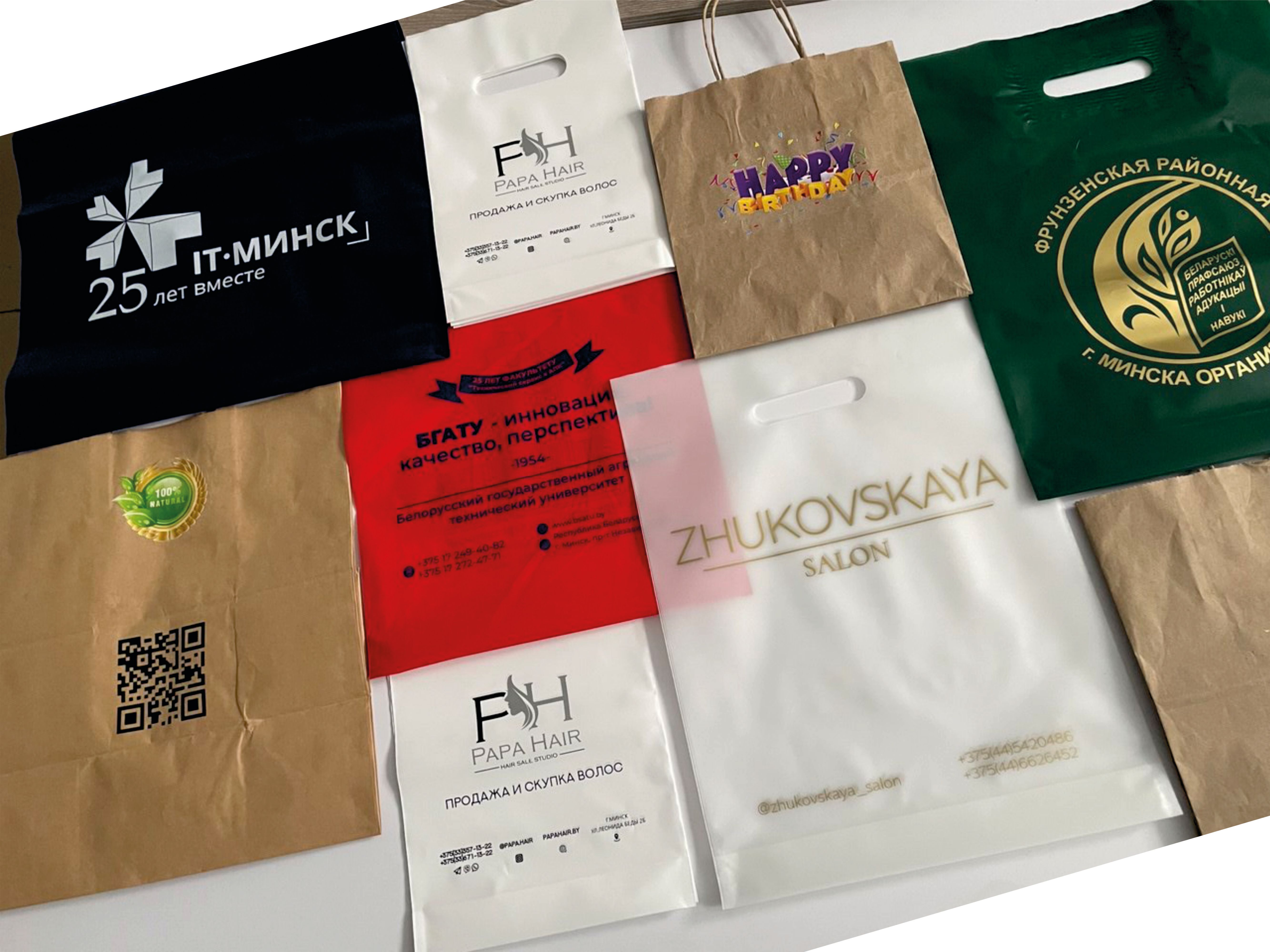 Мы изготавливаем пакеты с логотипом, фирменной символикой, рекламными и информационными изображениями для магазинов, ресторанов, выставок, корпоративных мероприятий и розничной торговли.